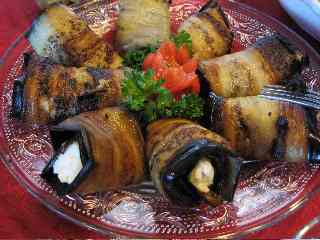 I love eggplant, I love garlic and I love goat cheese. If you're as fond of these three gifts of nature as I am you too will love this recipe. It's fairly quick and easy to prepare, and can be served hot, chilled or at room temperature. It's a great buffet item or appetizer, as well as a savory accompaniment to beef, pork or veal dishes.